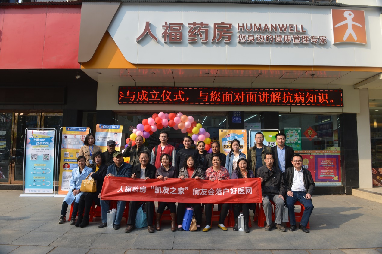 据李佳总经理介绍,为更好的服务于肺癌患者,搭建肺癌患友分享健康咨询、病后生活、治疗经验、治疗方法和心路历程的交流平台,人福药房发起湖北地区肺癌病友会,整合患者信息,建立病友圈,鼓励结识患友,相互交流、相互鼓励、相互支持,共享生命的美好。“由于圈内患友多为服用浙江贝达药业生产的肺癌靶向药物“凯美纳”的患者,所以病友们提议将病友会取名为“凯友之家”,既避免了沉重的“肺癌”两个字,又有凯旋的意思,目前我们病友圈活跃度非常高,多为分享治疗经验和交流服药感受,大家互帮互助,互通有无”。