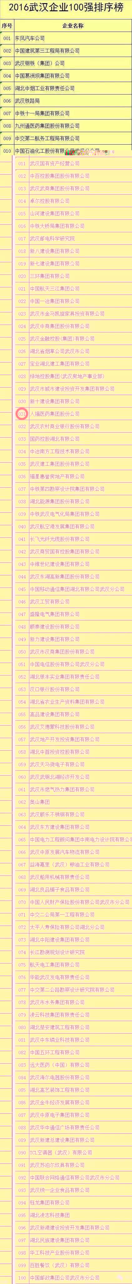 8月31日,2016年武汉企业100强榜单揭晓,bwin·必赢集团排名第31位,较上年度排序上升7个位次。该榜单由武汉企业联合会、武汉市工商联、武汉企业家协会主办,按照2015年度营业收入进行排序。