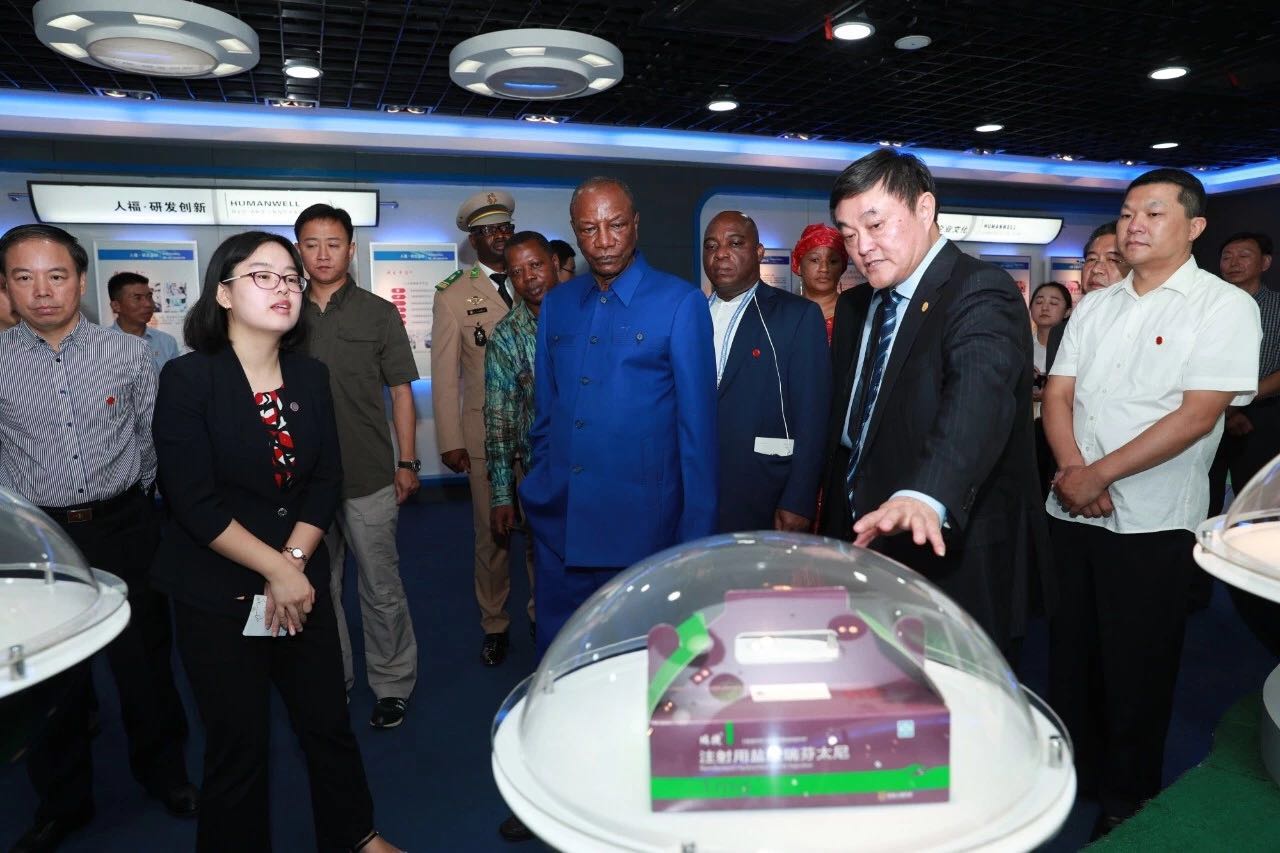 9月5日下午15时,几内亚共和国总统阿尔法·孔戴率代表团抵达宜昌人福药业公司,开始为期两天的访鄂行程。这是中非合作论坛北京峰会后,首个访鄂的非洲代表团,孔戴总统也是继博茨瓦纳总统后第二位到访人福的非洲国家元首。