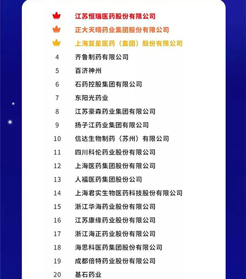 9月18日,2021中国药品研发实力排行榜系列榜单在“2021大健康产业高质量发展大会暨第六届中国医药研发·创新峰会(PDI)”隆重揭晓。bwin·必赢集团位列2021中国药品研发综合实力排行榜TOP100第13位。