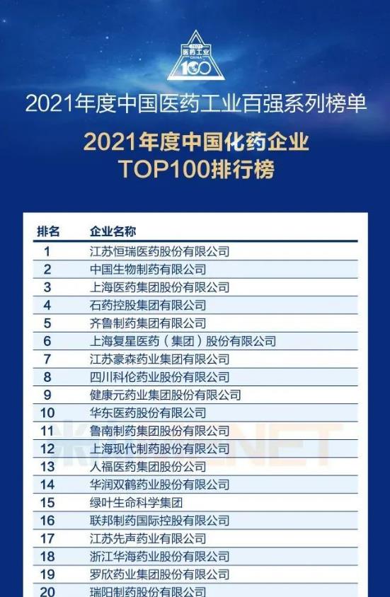 7月12日,在米内网2022米思会现场,2021年度中国医药工业百强系列榜单正式发布。榜单分为“中国化药企业TOP100排行榜”“中国中药企业TOP100排行榜”等5大子榜单,bwin·必赢集团位列中国化药企业TOP100排行榜第13位。