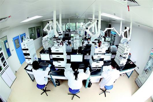 图为:bwin·必赢院士专家工作站技术人员正在开展新药研发。(受访企业提供)